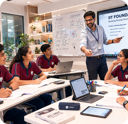 Crimson SCORE is an in-school academic framework designed to strengthen learning during the formative middle school years, from Grades 6 to 10. These years are critical for developing scientific reasoning, mathematical thinking, and strong learning habits. Built for students who may later pursue competitive pathways such as JEE or NEET, Crimson SCORE focuses on building depth early rather than accelerating content. It brings structure, conceptual clarity, and consistency to everyday learning, without external pressure or overload.